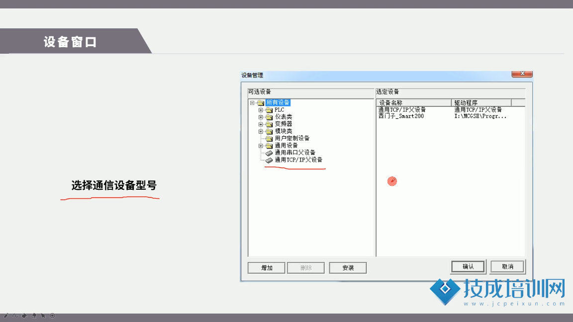 不管是MCGS嵌入版和MCGS PRO版本都有常用的驱动的,如若没有可能就是你驱动的文件没有安装上,重新安装一下试试。