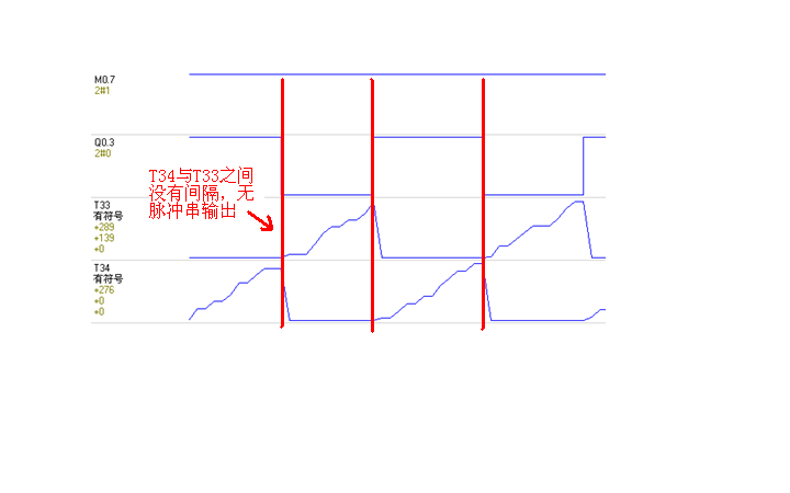 3、在图2中s7-200cn的问题关键是t33/t34没有被触发,建议你检查程序中t33/t34的使能端的控制逻辑,即这控制逻辑的结果必须为有效电平,这样才能触发t33/t34。
