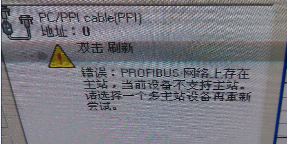 主机连接s7-200cpu224端口,通讯出现“profibus网络上存在主站,当前设备不支持主站。请选择一个多主站设备再重新尝试”。手动调整到term和stop模式再通信还是一样。串口和plc都正常,没有组网,只是一台计算机连接一台plc,问题是在主机上吗?