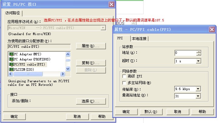 既然用的pc/ppi的电缆,在设置接口时就要采用ppi的通讯方式,不要采用profibus的;plc的通讯速率不确定,所以在尝试的过程中,要更改通讯的速率多尝试几次。