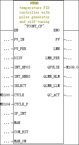 qpulse是输出引脚,不能直接赋值。另两个变量的类型为real,可以用md变量,也可以直接把时间值赋给背景数据块中的这两个变量,即"db_tcont_cp".cycle和"db_tcont_cp".cycle_p