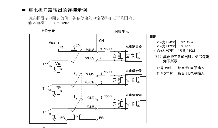 注意:plc的输出需要串入个2.2k的限流电阻,否则有可能烧坏驱动器